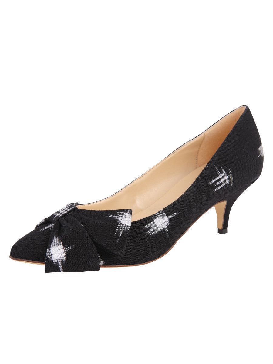 Meet Skylar: our classic pointed toe pump with darling side bow. The striking black and white fabric is versatile yet eye-catching. Also available in luxurious blush suede that is a versatile must-have. Skylar is handcrafted in Italy by the finest Italian shoemakers. The leathers and materials used to make this shoe are all hand curated by Italian artisans for impeccable fit and quality.